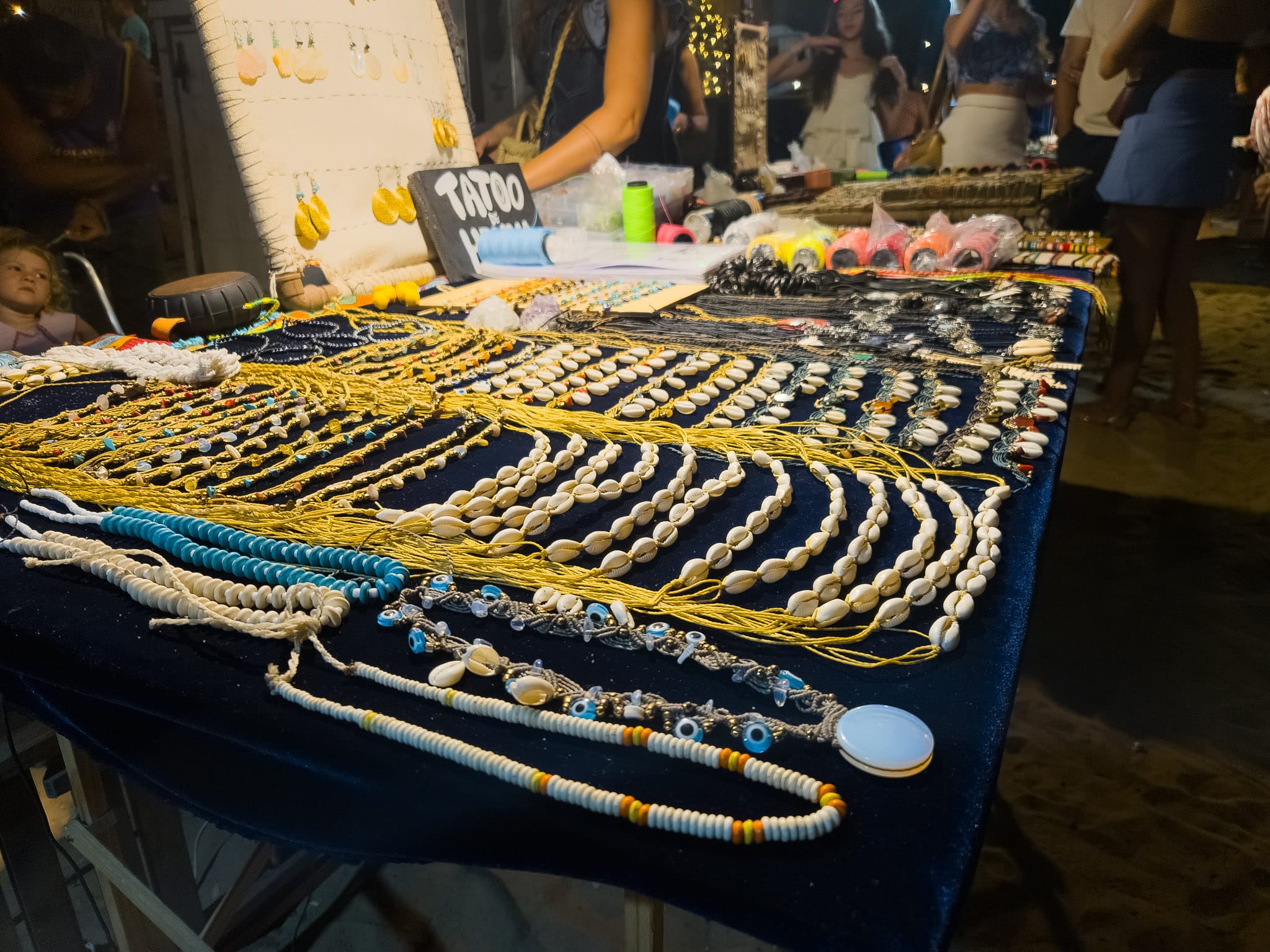 Once it’s dark, Jericoacoara’s center takes on a night market feel. Stalls appear around the main square and nearby streets, selling tapioca, grilled skewers, açaí bowls, caipirinhas, and small souvenirs.